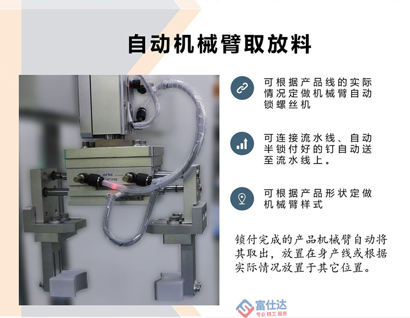 富仕達(dá)擁有獨(dú)立研發(fā)設(shè)計團(tuán)隊(duì),10多位自動化高級工程師,5000㎡自動鎖螺絲機(jī)生產(chǎn)、測試車間,專業(yè)售后服務(wù)團(tuán)隊(duì),為客戶提供方案設(shè)計、設(shè)備制造、操作培訓(xùn)、售后服務(wù)等一站式服務(wù)。 公司將持續(xù)提升技術(shù)創(chuàng)新和產(chǎn)品服務(wù)方面的優(yōu)勢,堅持“專業(yè)、精工、服務(wù)”的企業(yè)理念,聚焦于自動鎖螺絲設(shè)備生產(chǎn),通過系統(tǒng)的一站式解決方案,真正的幫助客戶提升效率、降低成本,提升客戶的核心競爭力。