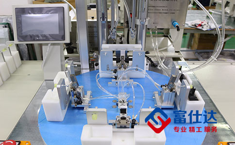 結(jié)合產(chǎn)品特點(diǎn)和客戶的需求,這款設(shè)備最大的優(yōu)勢是可以同時(shí)鎖付兩種螺絲,采用2個(gè)供料機(jī)分別裝置2種不同的螺絲,在轉(zhuǎn)臺上面設(shè)計(jì)四個(gè)治具,可固定4件產(chǎn)品;比起很多工廠大量招聘工人來完成鎖付,這臺拉桿箱把手自動擰螺絲機(jī)設(shè)備效率更高!鎖付的產(chǎn)品質(zhì)量更有保障!