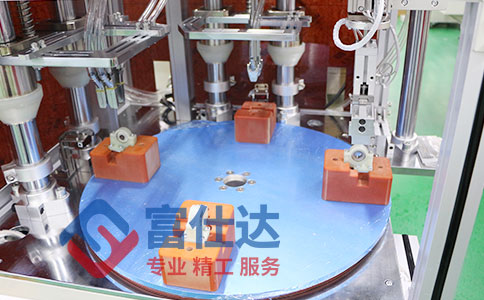 多軸雙鎖付系統(tǒng)自動擰螺絲設備工作原理:設備采用富仕達轉(zhuǎn)臺式擰螺絲方案,具有轉(zhuǎn)臺式自動擰螺絲設備的所有功能,設計雙鎖付機構(gòu),員工將待擰螺絲的產(chǎn)品放置在夾具上后,設備通過轉(zhuǎn)盤將產(chǎn)品送至第一道擰螺絲工序,一次同時輸送并自動擰好按摩器軸卡子上的4顆螺絲,員工繼續(xù)放置產(chǎn)品,同時轉(zhuǎn)臺將擰好第一道工序的產(chǎn)品送至第二道工序,一次輸送并自動擰好按摩器軸卡子上面的2顆螺絲,再轉(zhuǎn)到下一工位將鎖付好的產(chǎn)品由機械手取出,完成產(chǎn)品作業(yè)。整個過程維持同步圓周作業(yè),員工只需要不停放產(chǎn)品即可。